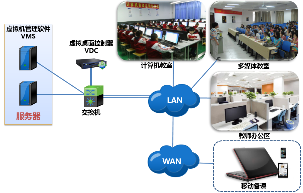 - 減少(shǎo)終端PC維護量,加快(kuài)教學環境部署切換;